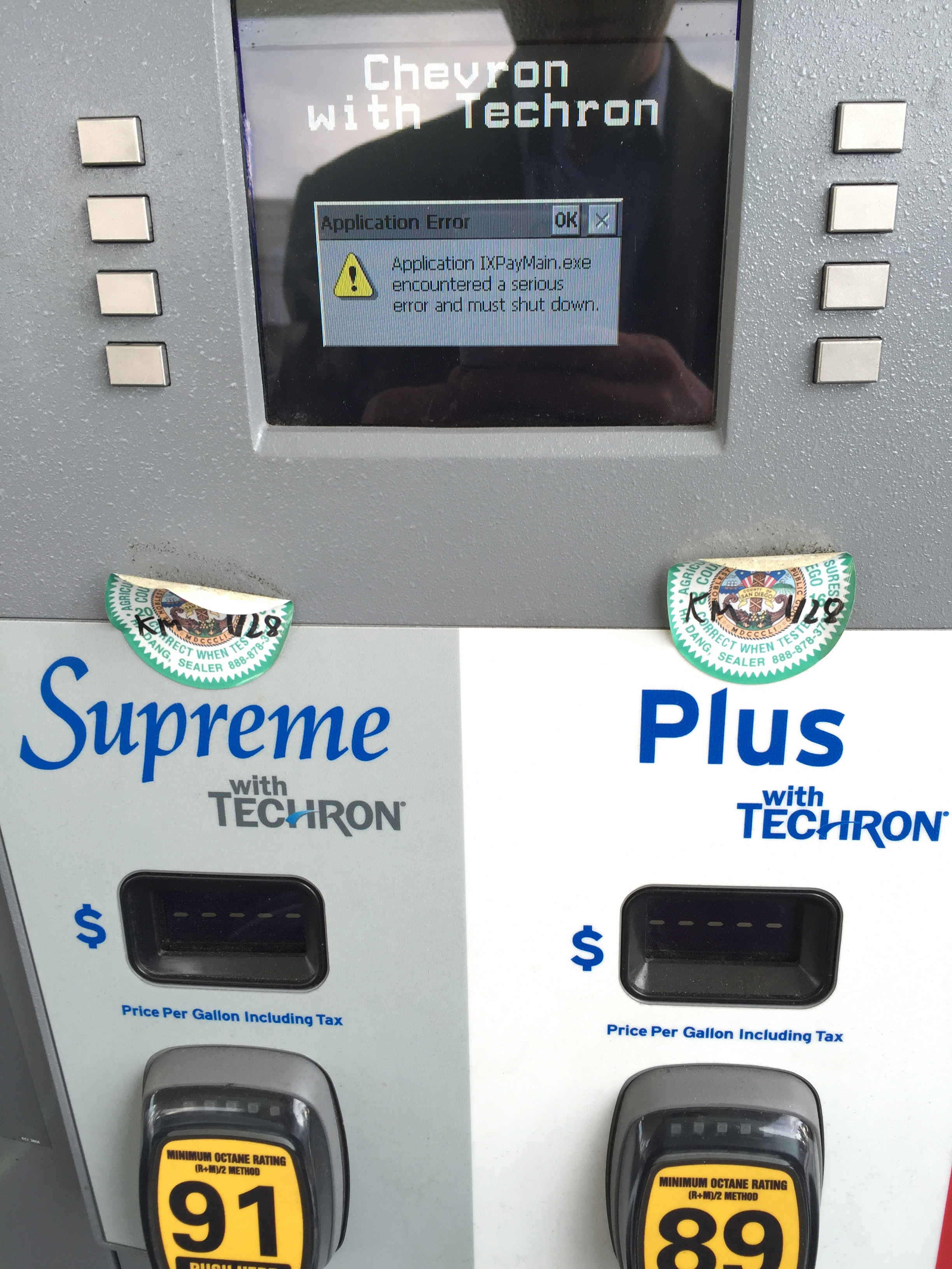 I found this gas pump had crashed, and was unable to pay at the pump. Imagine if a virus knocked out every gas pump simultaneously in the nation, or if a chorus of infected gas pumps began to unwittingly mount DDoS attacks on critical infrastructure.